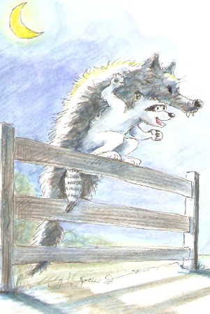 Hier siehst du, wie ich mich als Wolf verkleidet habe. Ich wollte Bauer Runkelrübs Schafe erschrecken - aber das ist eine lange Geschichte!